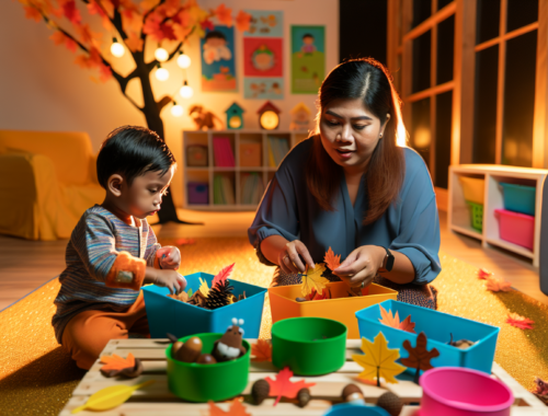 秋の自然素材を活用した親子の感覚と言語発達を育む知育遊び